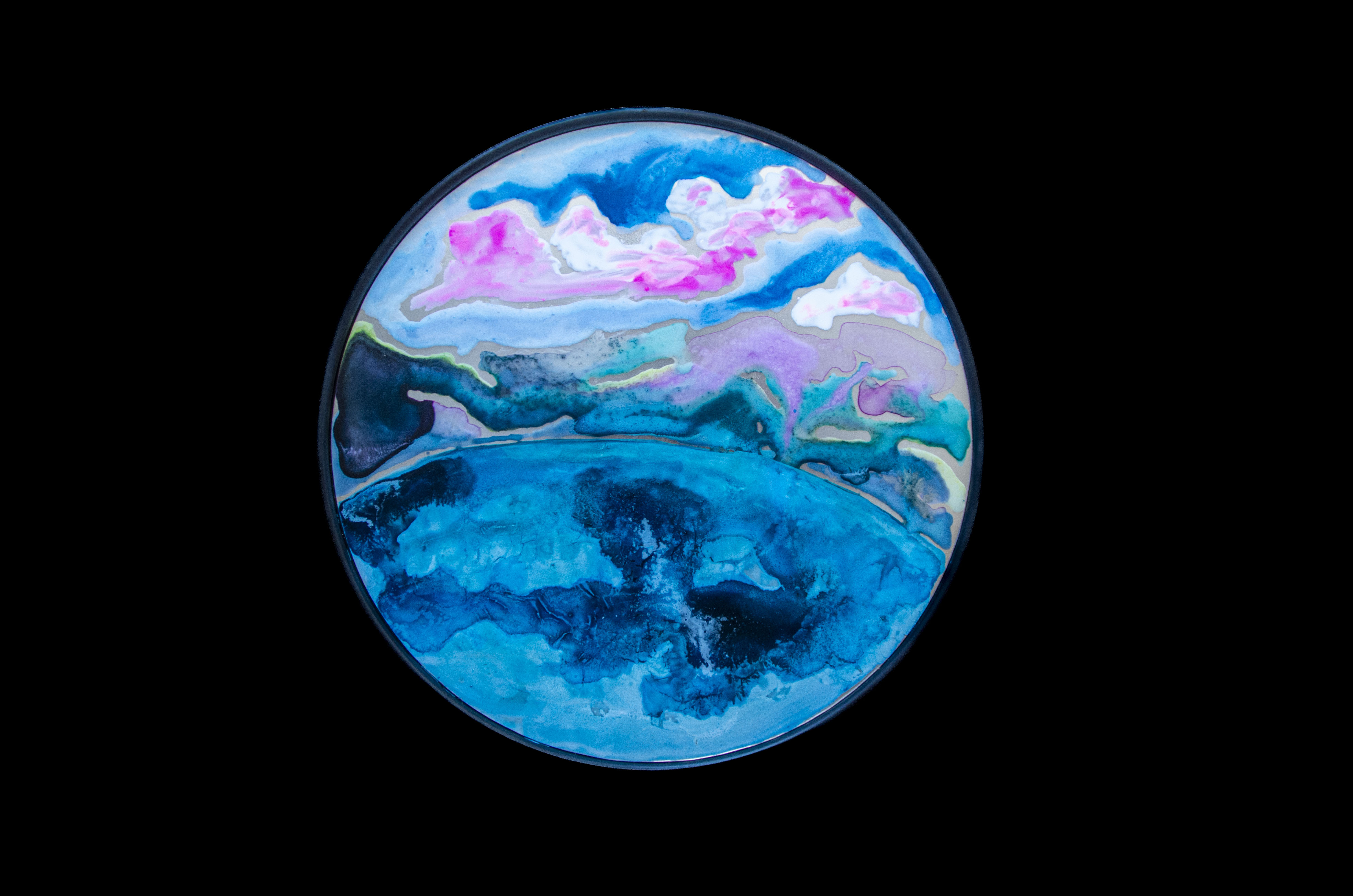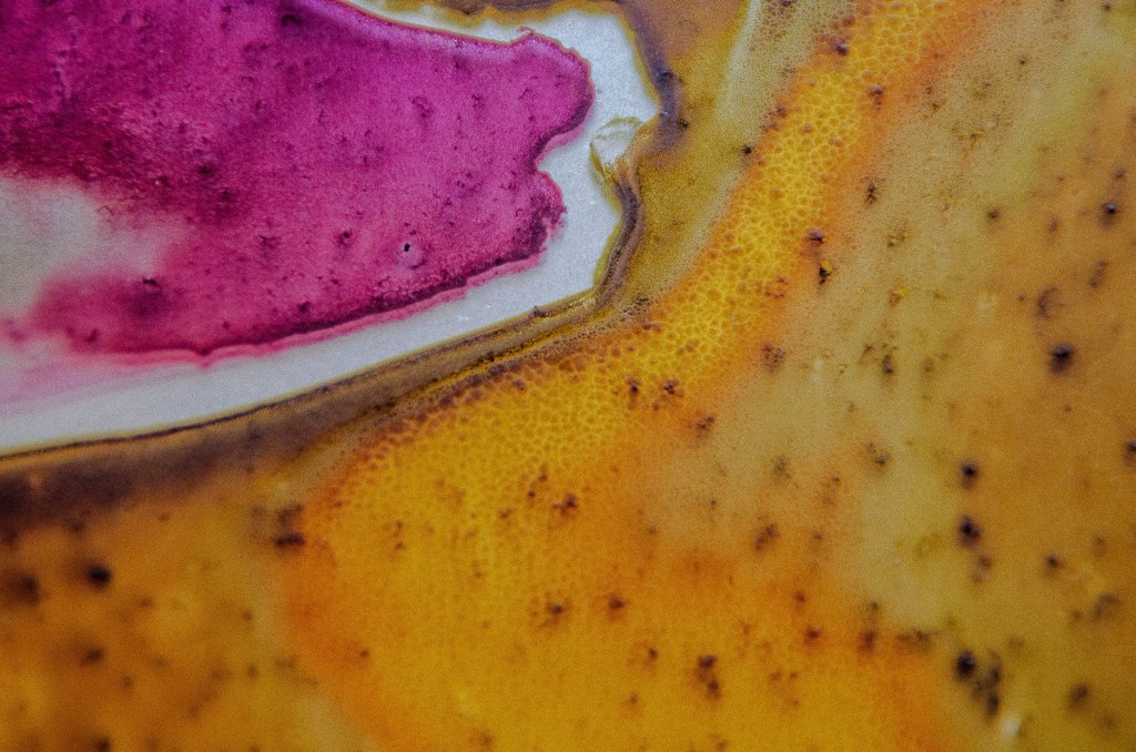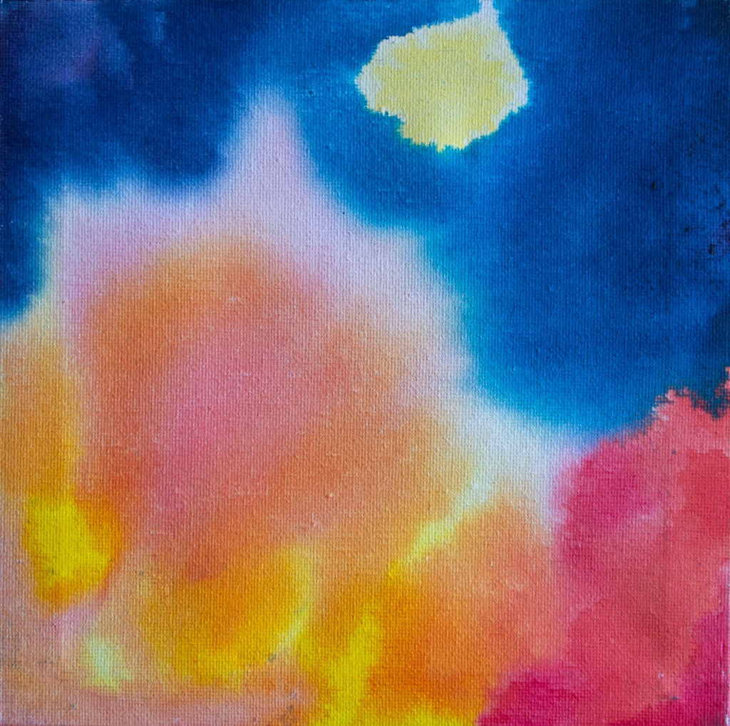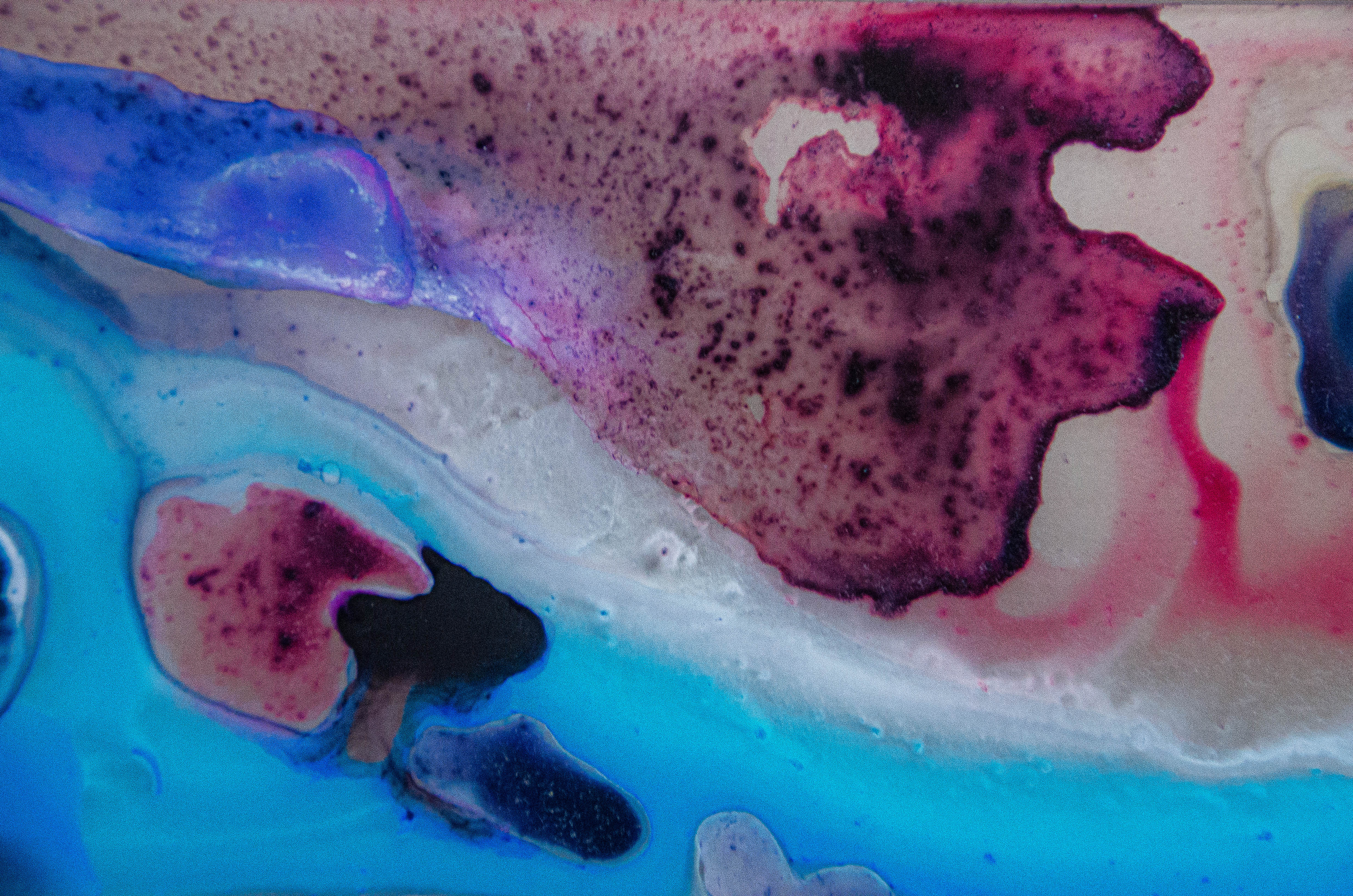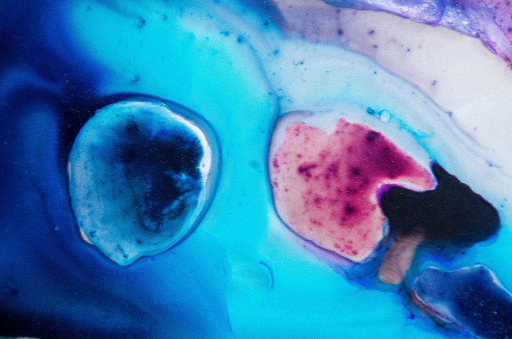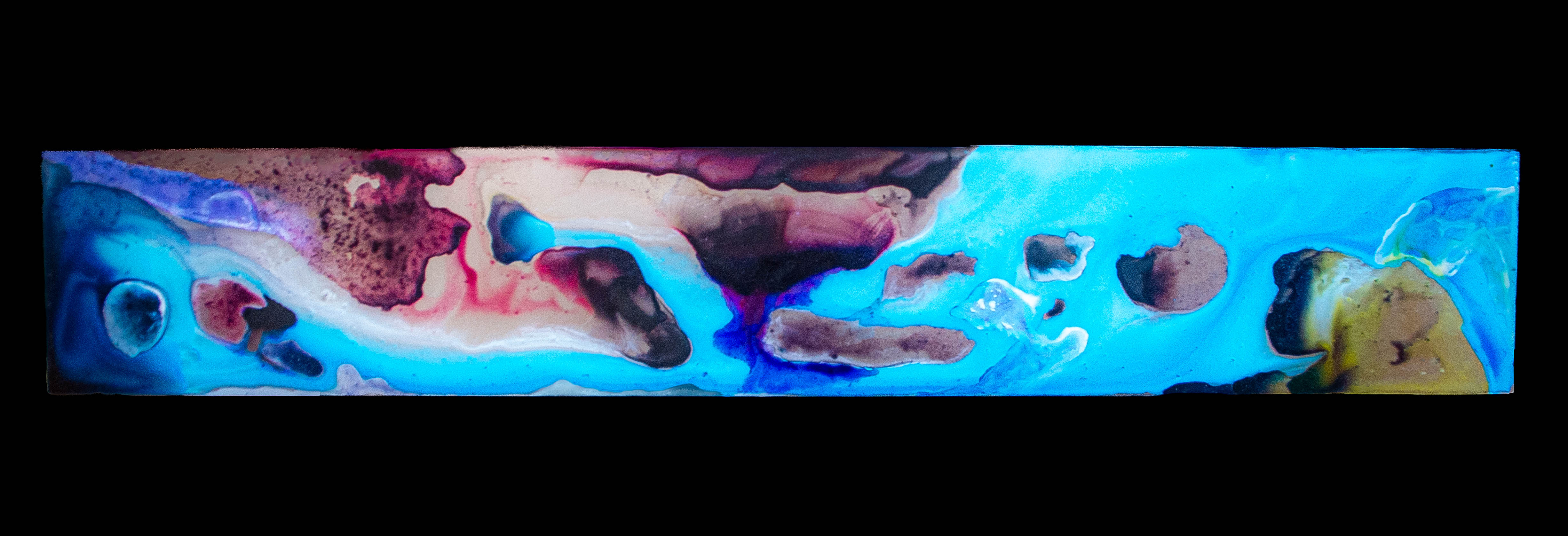 La suite de cette recherche nous emmène jusqu’à la peinture. Il propose aujourd’hui une série d’œuvres réalisées sur miroir, en utilisant de l’encre acrylique et de l’aquarelle. Son travail explore les interactions complexes entre la lumière, la transparence des encres colorées et les reflets du support. À travers cette technique, il cherche à atteindre l’inframince entre l’abstrait et le figuratif, créant des compositions énigmatiques qui évoluent en fonction du regard du spectateur.