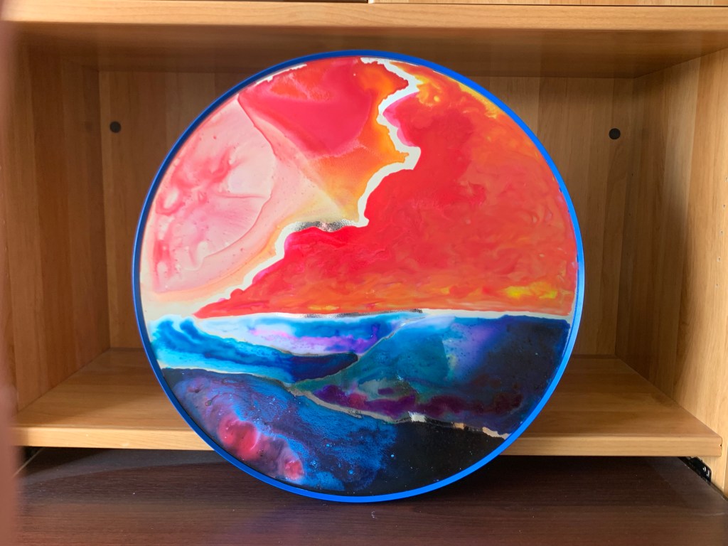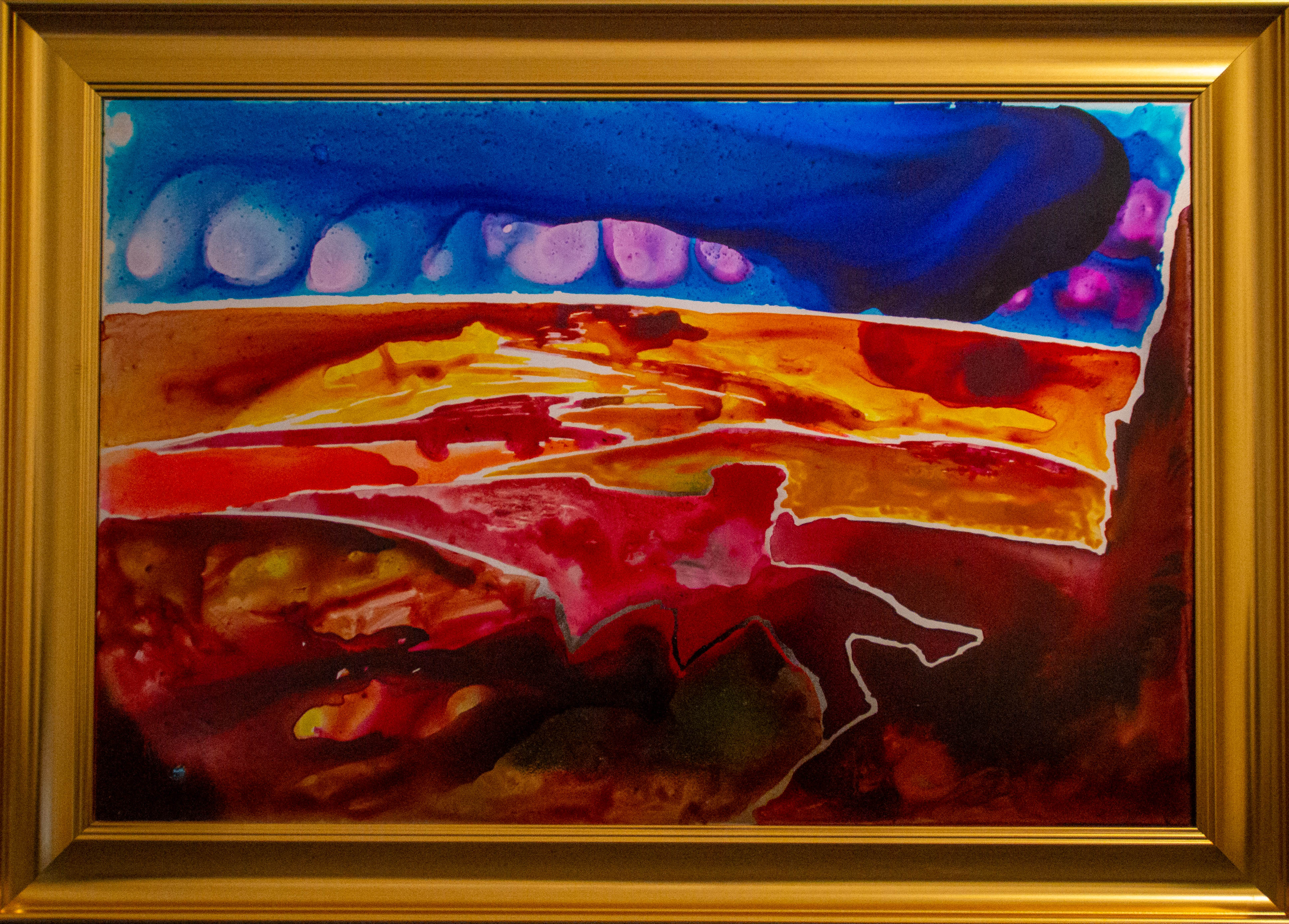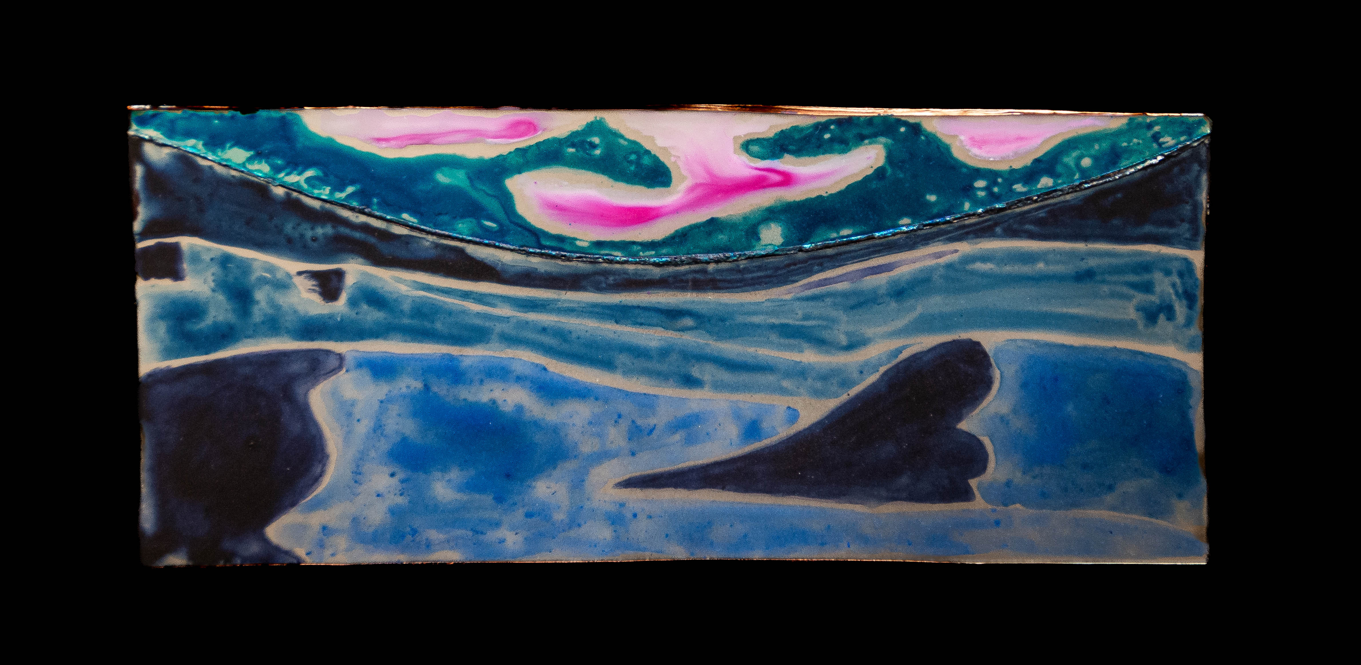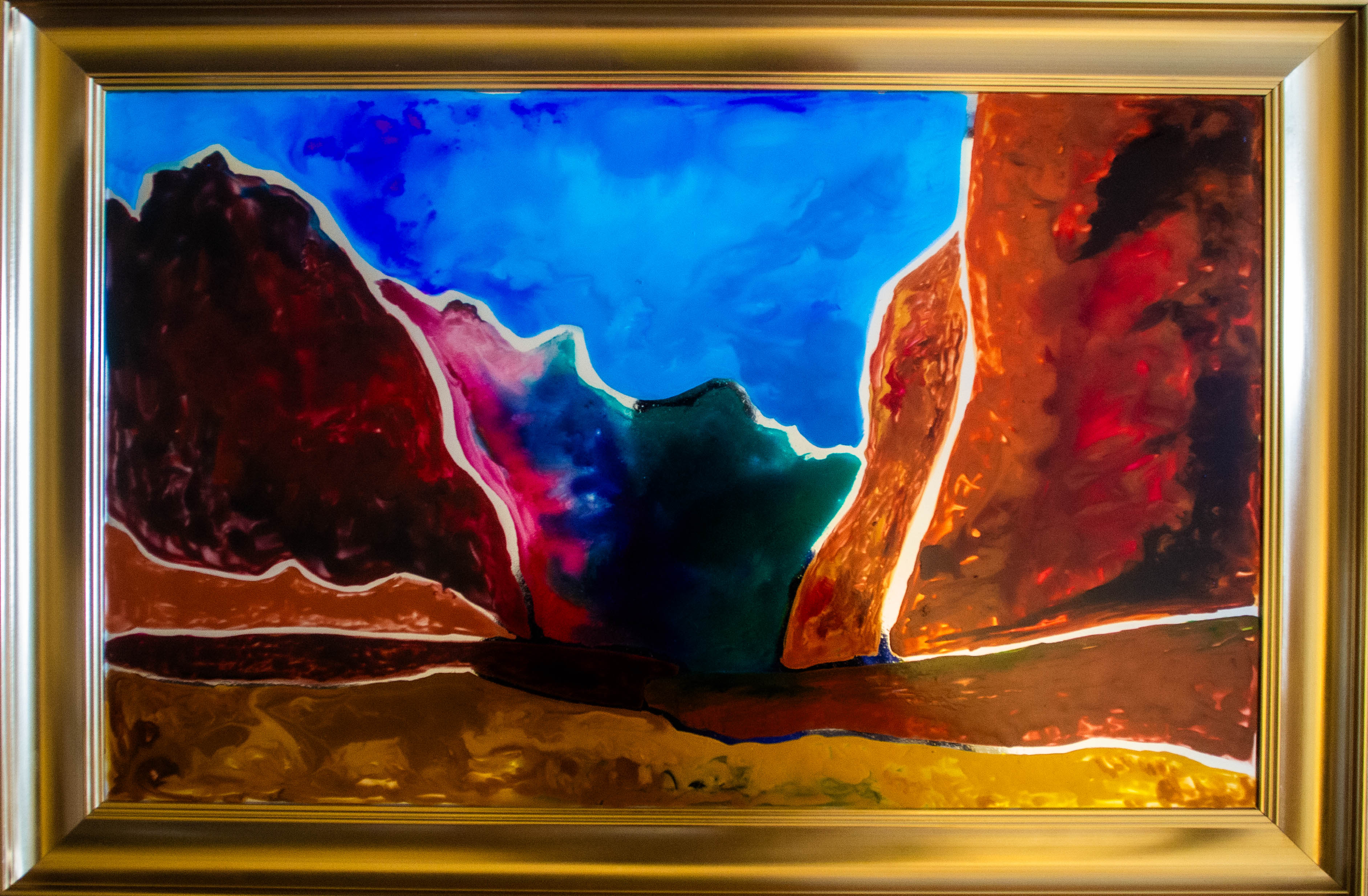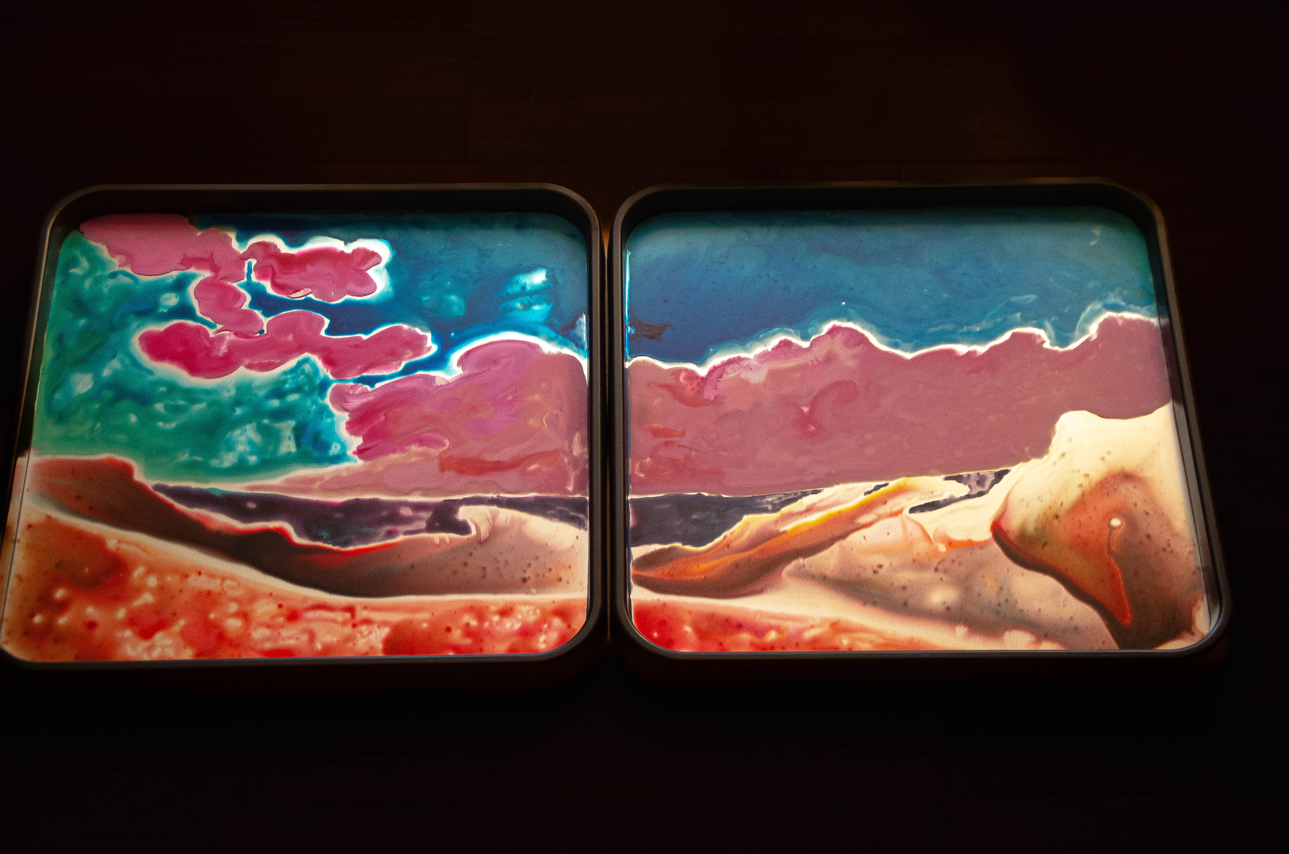 La suite de cette recherche nous emmène jusqu’à la peinture. Il propose aujourd’hui une série d’œuvres réalisées sur miroir, en utilisant de l’encre acrylique et de l’aquarelle. Son travail explore les interactions complexes entre la lumière, la transparence des encres colorées et les reflets du support. À travers cette technique, il cherche à atteindre l’inframince entre l’abstrait et le figuratif, créant des compositions énigmatiques qui évoluent en fonction du regard du spectateur.