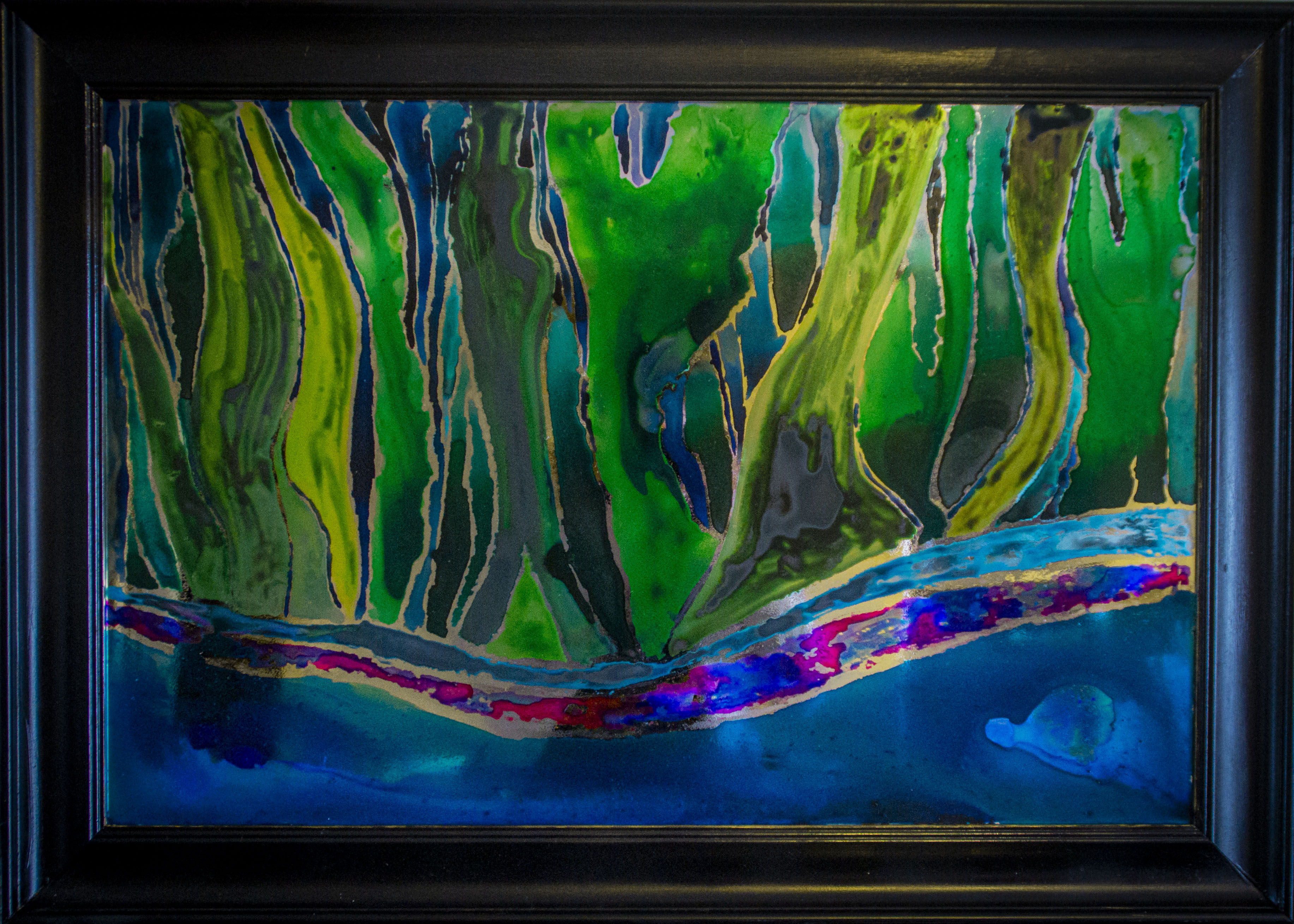 100.5 x 35.5 cm, Aquarelle sur Miroir